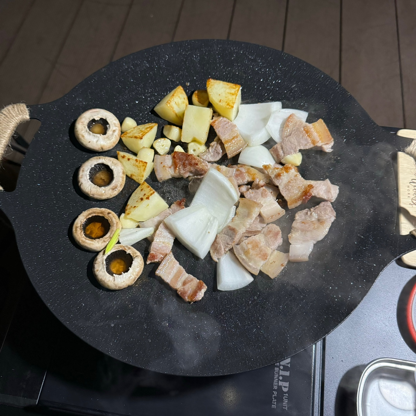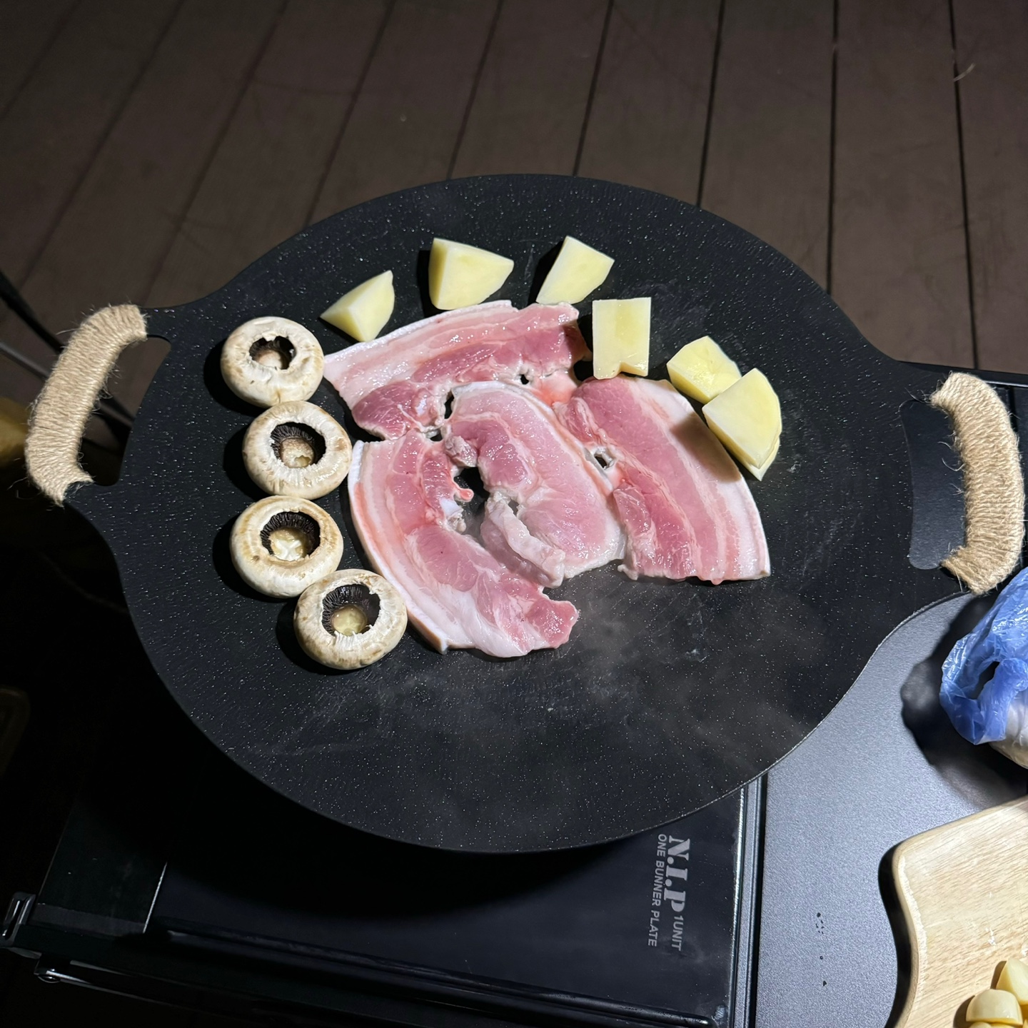 그리들을 처음으로 사용한 캠핑에서는 삼겹살을 구워서 먹고